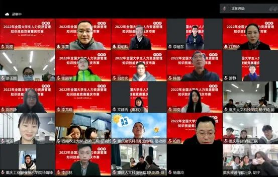 在參賽選手和指導老師的焦急等待中,大賽組委會本著公平、公正、公開的原則,統計并核算比賽成績。來自西南政法大學、重慶交通大學等五支隊伍獲得本科組一等獎,來自重慶財經職業學院、重慶建筑科技職業學院等兩支隊伍獲得高職組一等獎。其他院校32支參賽隊伍分別獲得二等獎和三等獎,祝賀各參賽院校!至此,2022年全國大學生人力資源管理知識技能競賽重慶市賽圓滿落下帷幕,期待我們來年再聚!