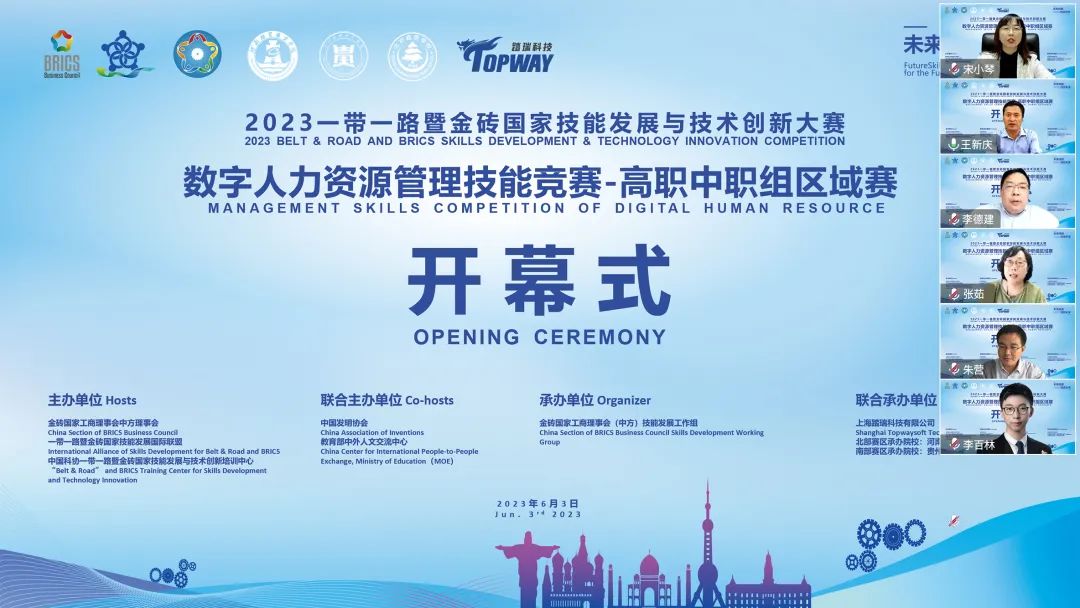 6月3日上午9時,2023一帶一路暨金磚國家技能發(fā)展與技術(shù)創(chuàng)新大賽數(shù)字人力資源管理技能賽項高職、中職組區(qū)域賽開幕式如約而至,一帶一路暨金磚國家技能發(fā)展國際聯(lián)盟副秘書長、金磚國家技能發(fā)展與技術(shù)創(chuàng)新大賽組委會國內(nèi)競賽處主任宋小琴為大賽致辭。