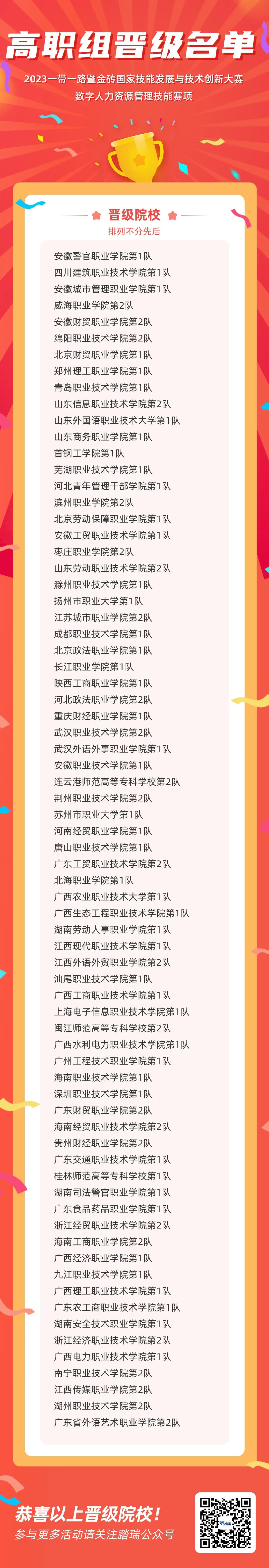 在參賽選手和指導(dǎo)老師的焦急等待中,大賽組委會本著公平、公正、公開的原則,統(tǒng)計并核算比賽成績。至此,2023一帶一路暨金磚國家技能發(fā)展與技術(shù)創(chuàng)新大賽數(shù)字人力資源管理技能賽項高職、中職組區(qū)域賽圓滿落下帷幕,期待晉級隊伍在全國總決賽中有更優(yōu)秀的表現(xiàn)!