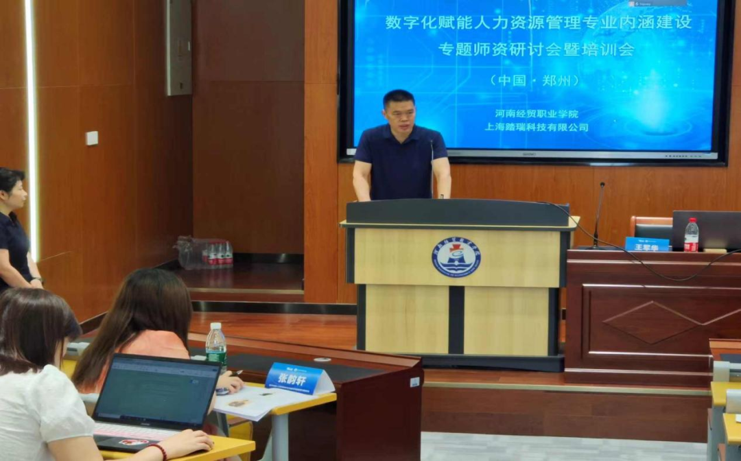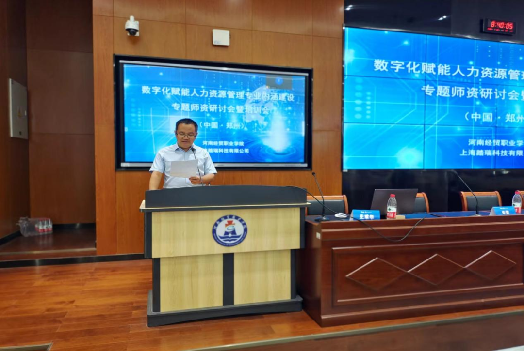 7月26日~28日,由上海踏瑞科技有限公司主辦、河南經(jīng)貿(mào)職業(yè)學(xué)院承辦的主題為“數(shù)字化賦能人力資源管理專業(yè)內(nèi)涵建設(shè)”的師資研討會(huì)暨培訓(xùn)會(huì)于河南經(jīng)貿(mào)職業(yè)學(xué)院龍子湖校區(qū)順利舉辦。河南經(jīng)貿(mào)職業(yè)學(xué)院副校長(zhǎng)康坤、上海踏瑞科技有限公司總經(jīng)理朱營(yíng)、河南經(jīng)貿(mào)職業(yè)學(xué)院管理學(xué)院院長(zhǎng)王軍華、河南經(jīng)貿(mào)職業(yè)學(xué)院商務(wù)學(xué)院院長(zhǎng)王麗麗、廣東工貿(mào)職業(yè)技術(shù)學(xué)院工商管理學(xué)院副院長(zhǎng)倪春麗、南京人力資源產(chǎn)業(yè)協(xié)會(huì)秘書長(zhǎng)夏里根、HR數(shù)據(jù)研究分院院長(zhǎng)王斌、易路人力資源科技產(chǎn)品副總裁吳益瑾、益才咨詢高級(jí)顧問薛曉峰、上海近嶼智能創(chuàng)始人方小雷等多名行業(yè)內(nèi)專家、學(xué)者及企業(yè)代表聯(lián)袂出席本次研討會(huì)議。