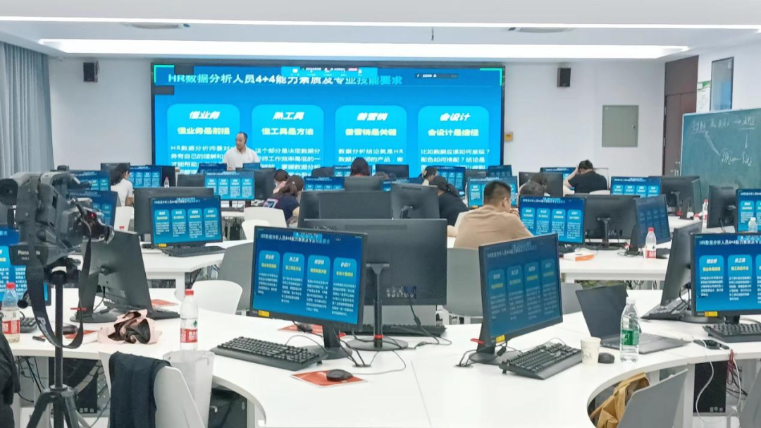 師資培訓(xùn)環(huán)節(jié)中,人力資源數(shù)據(jù)研究分院院長(zhǎng)、五星級(jí)企業(yè)內(nèi)訓(xùn)講師王斌結(jié)合人力資源數(shù)字化轉(zhuǎn)型探索之旅系列課程及企業(yè)實(shí)際案例,以“HR數(shù)據(jù)分析在企業(yè)實(shí)戰(zhàn)中的具體應(yīng)用”為主題展開了“線上+線下”為期兩天的互動(dòng)培訓(xùn)。一眾與會(huì)專家、學(xué)者從全流程應(yīng)用觸達(dá)角度,在研學(xué)推進(jìn)HR數(shù)據(jù)分析場(chǎng)景建模與應(yīng)用、加強(qiáng)HR數(shù)據(jù)管道建設(shè)、創(chuàng)新HR效能管理儀表盤的設(shè)計(jì)與開發(fā)等主題課程的過程中,逐步構(gòu)建了HR數(shù)據(jù)分析應(yīng)用的全景認(rèn)知,并針對(duì)當(dāng)下人力資源數(shù)字化應(yīng)用面臨的機(jī)遇與挑戰(zhàn)進(jìn)行了互動(dòng)剖析。