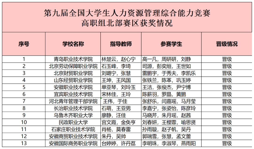 在參賽選手和指導(dǎo)老師的焦急等待中,大賽組委會(huì)本著公平、公正、公開(kāi)的原則,統(tǒng)計(jì)并核算各參賽團(tuán)隊(duì)比賽成績(jī),獲獎(jiǎng)名單如上。至此,第九屆全國(guó)大學(xué)生人力資源管理綜合能力競(jìng)賽(高職組)北部區(qū)域賽圓滿落下帷幕。