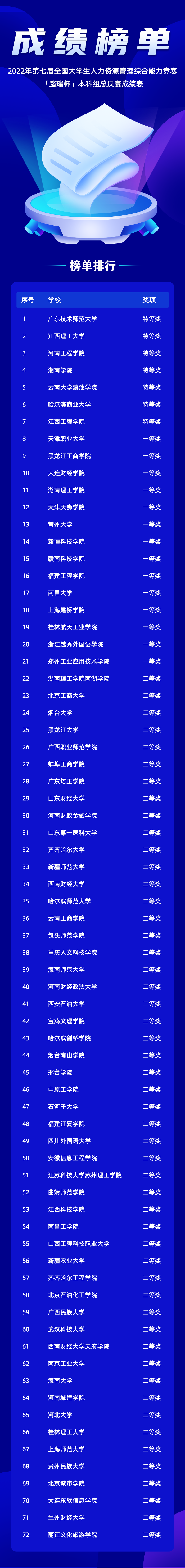 在參賽選手和指導老師的焦急等待中,大賽組委會本著公平、公正、公開的原則,統計并核算各參賽團隊比賽成績,獲獎名單如下。至此,2022年第七屆全國大學生人力資源管理綜合能力競賽總決賽(踏瑞杯)圓滿落下帷幕,期待我們來年再聚!