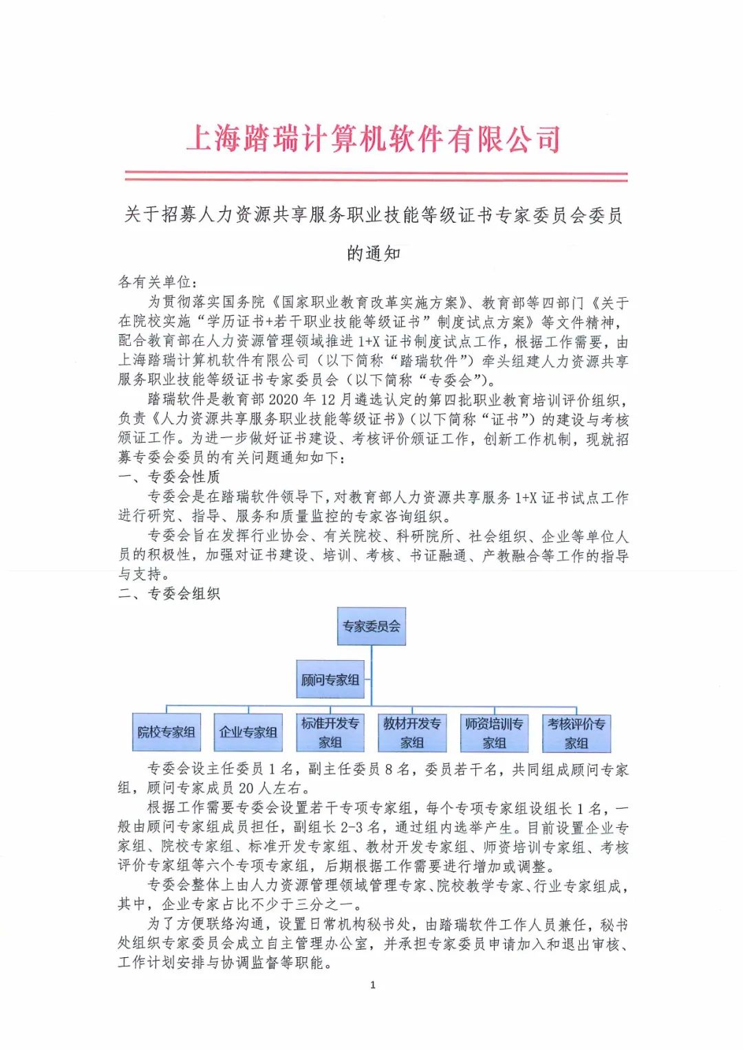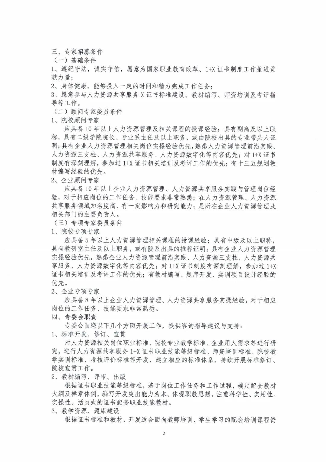 《關于招募人力資源共享服務職業技能等級證書專家委員會委員的通知》附件下載